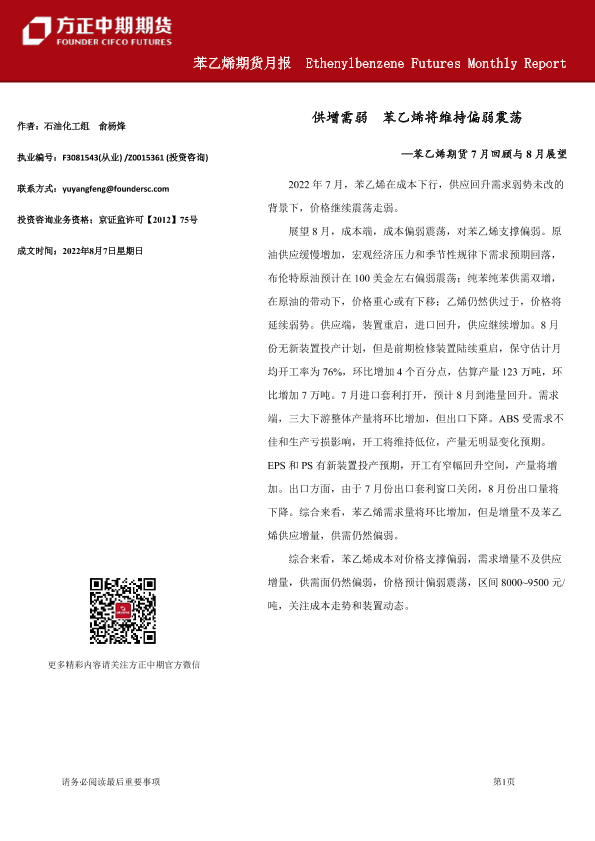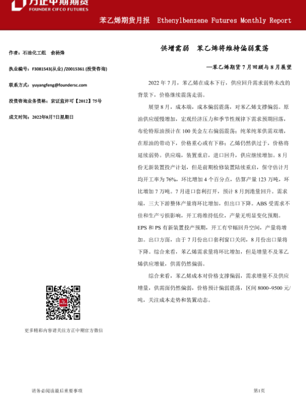【方正中期期货】【20220807】苯乙烯期货月报-20220807-22页