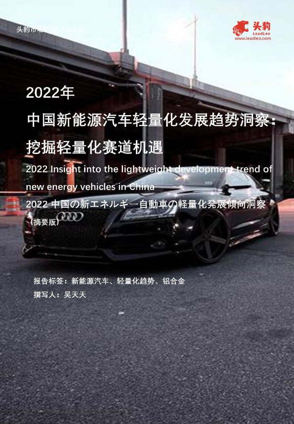 【头豹研究院】【202201】2022年中国新能源汽车轻量化发展趋势洞察:挖掘轻量化赛道机遇(摘要版)-9页