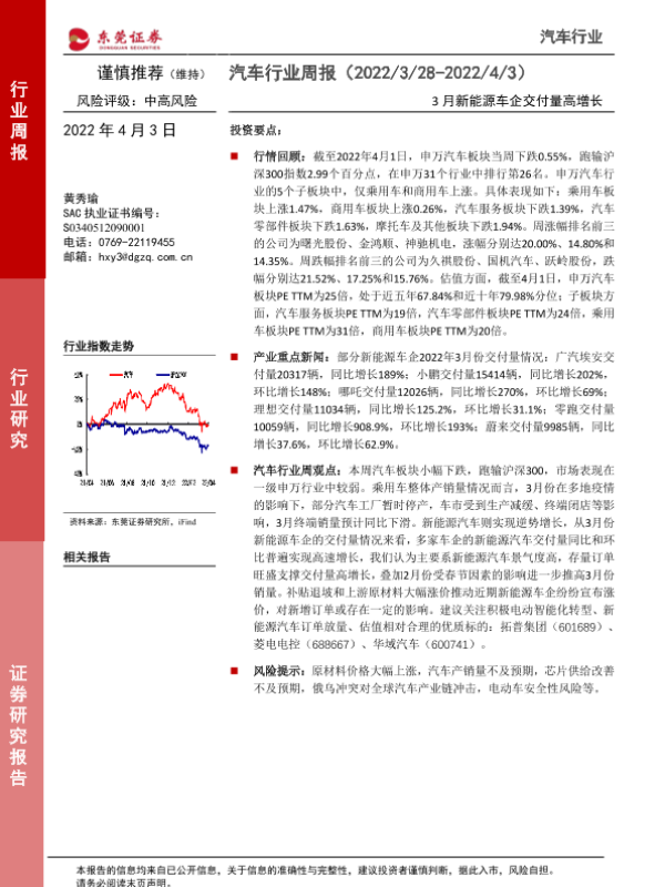 【东莞证券】【20220403】汽车行业周报:3月新能源车企交付量高增长-11页