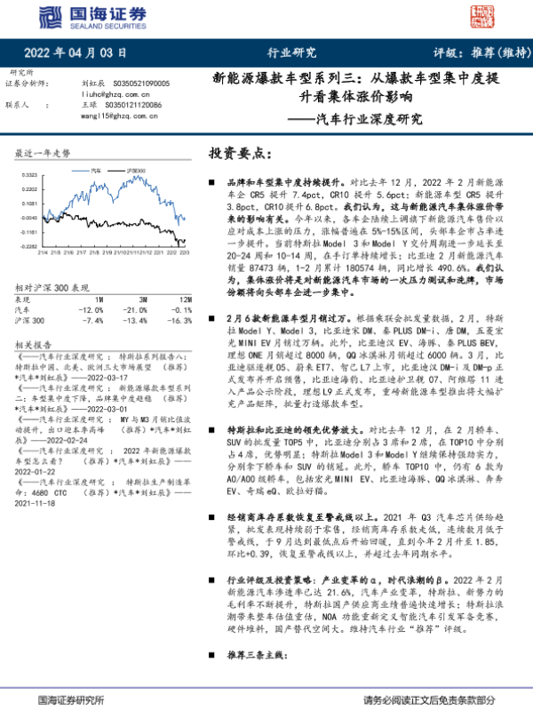 【国海证券】【20220403】20220403-国海证券-汽车行业深度研究:新能源爆款车型系列三:从爆款车型集中度提升看集体涨价影响-23页