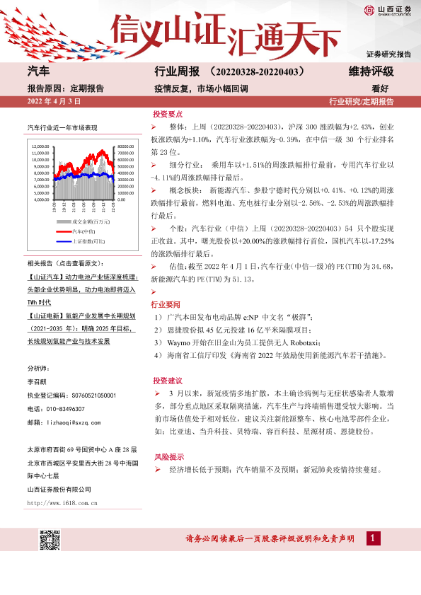 【山西证券】【20220403】20220403-山西证券-汽车行业周报:疫情反复,市场小幅回调-17页