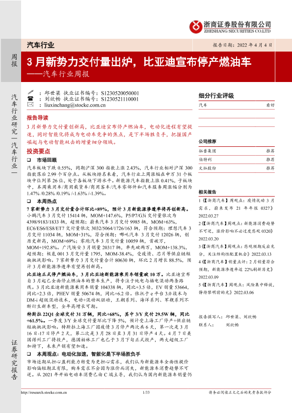 【浙商证券】【20220404】20220404-浙商证券-汽车行业周报:3月新势力交付量出炉,比亚迪宣布停产燃油车-33页