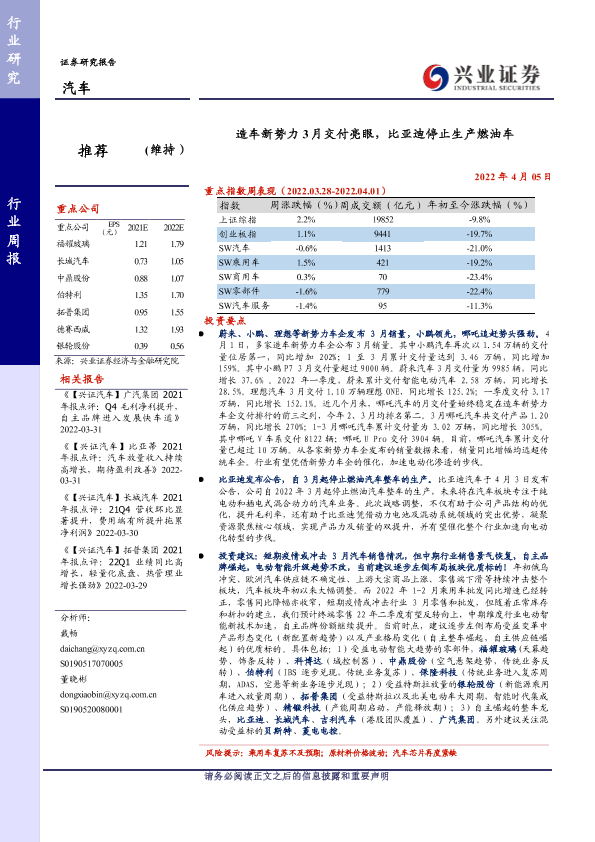 【兴业证券】【20220405】20220405-兴业证券-汽车行业周报:造车新势力3月交付亮眼,比亚迪停止生产燃油车-30页
