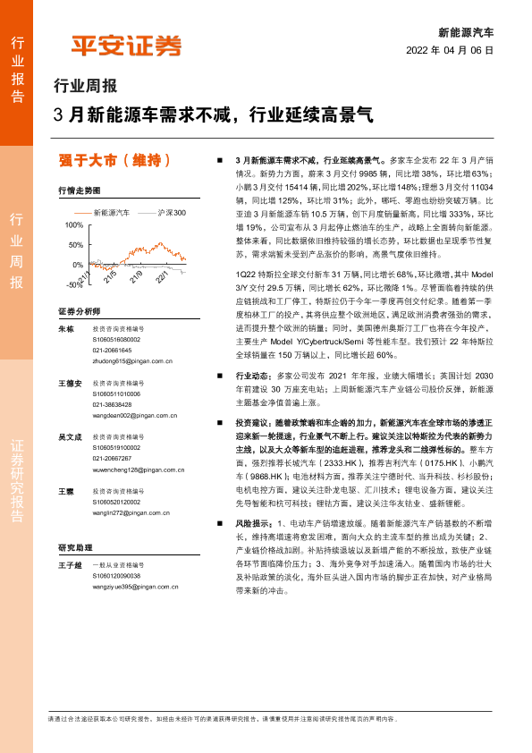 【平安证券】【20220406】20220406-平安证券-新能源汽车行业周报:3月新能源车需求不减,行业延续高景气-9页