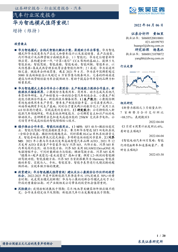 【东吴证券】【20220406】汽车行业深度报告:华为智选模式值得重视!-20页