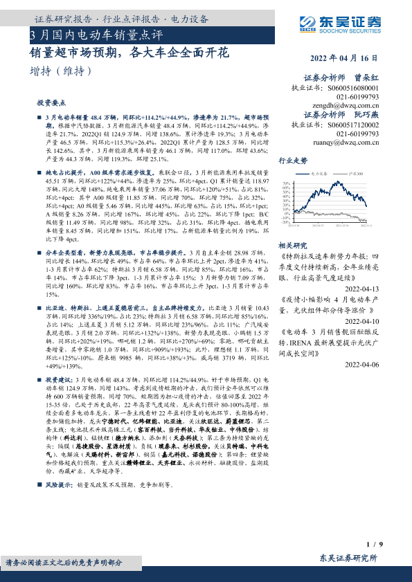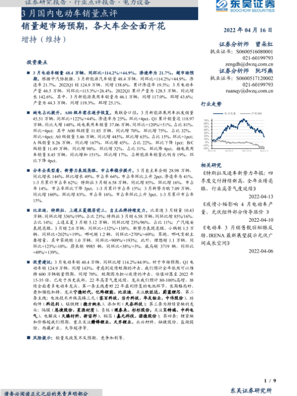 【东吴证券】【20220416】3月国内电动车销量点评:销量超市场预期,各大车企全面开花-9页