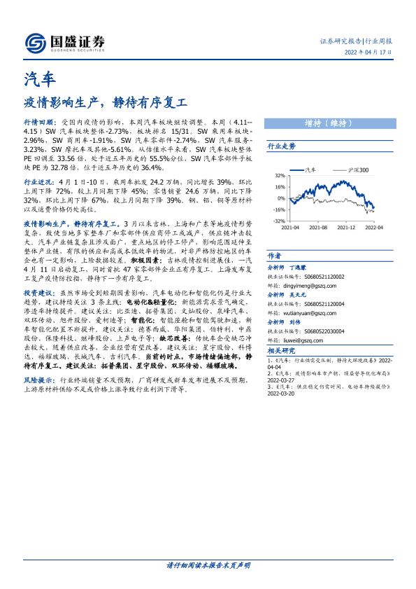 【国盛证券】【20220417】20220417-国盛证券-汽车行业周报:疫情影响生产,静待有序复工-28页