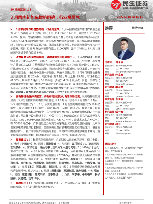 【民生证券】【20220416】EV观察系列113:3月国内新能车增势明确,行业高景气-21页