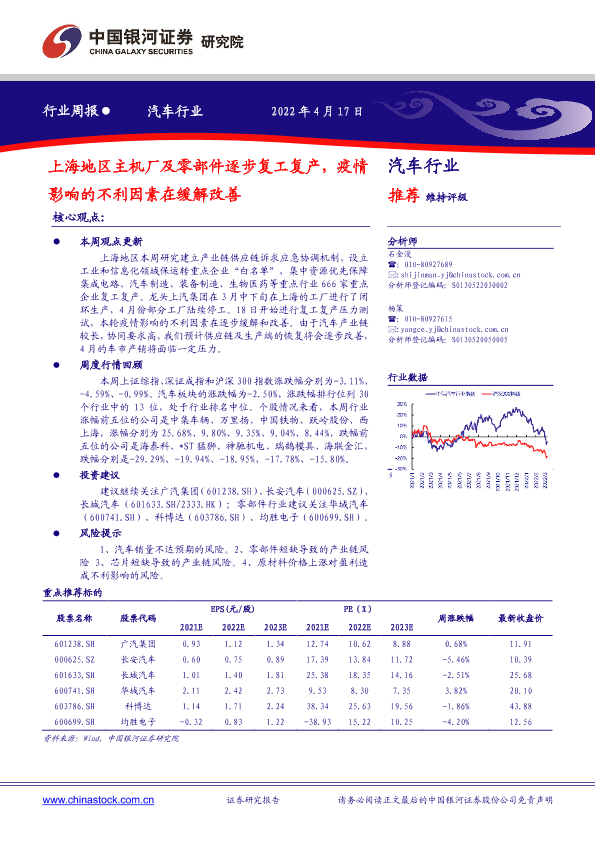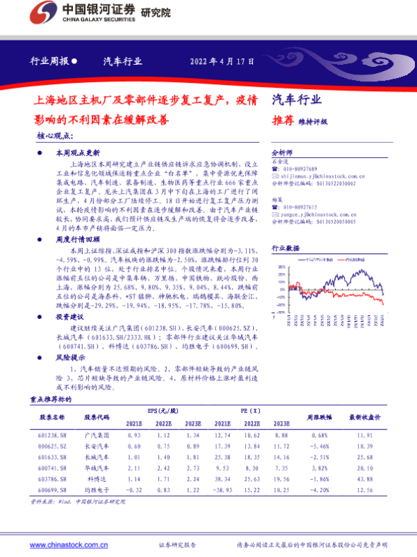 【银河证券】【20220417】20220417-中国银河-汽车行业周报:上海地区主机厂及零部件逐步复工复产,疫情影响的不利因素在缓解改善-12页