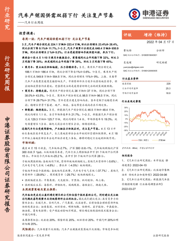 【申港证券】【20220417】汽车产销因供需双弱下行 关注复产节奏-16页