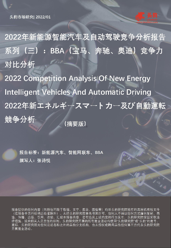 【头豹研究院】【20220420】2022年新能源智能汽车及自动驾驶竞争分析报告系列(三):BBA(宝马、奔驰、奥迪)竞争力对比分析(摘要版)-10页
