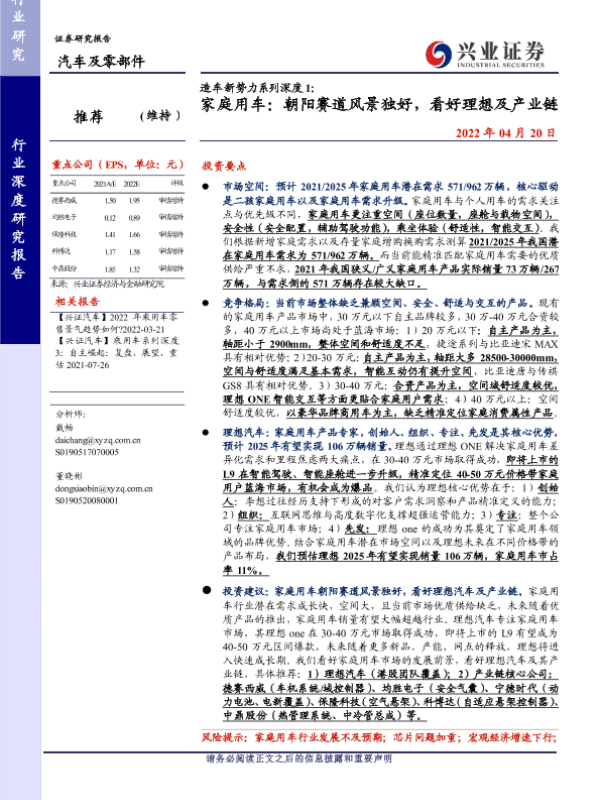 【兴业证券】【20220420】造车新势力系列深度 1:家庭用车:朝阳赛道风景独好,看好理想及产业链-32页