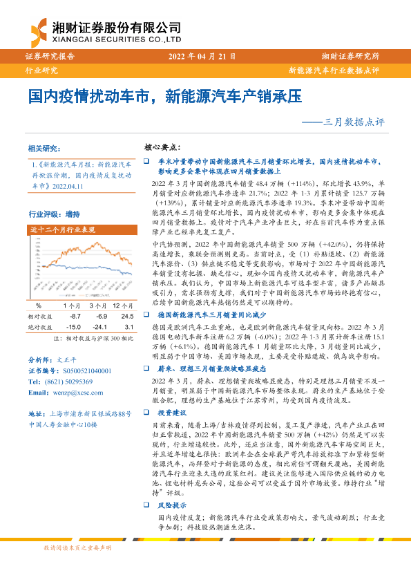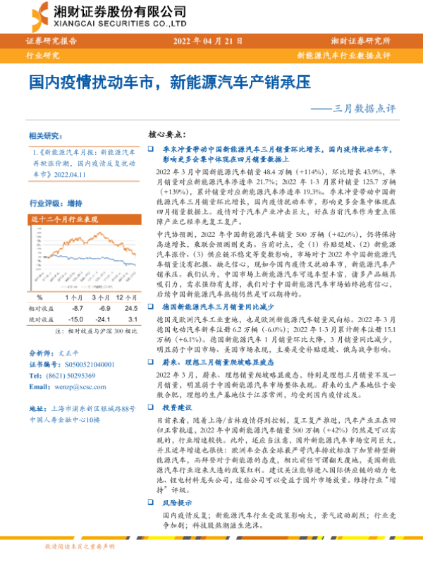 【湘财证券】【20220421】国内疫情扰动车市,新能源汽车产销承压——三月数据点评-13页