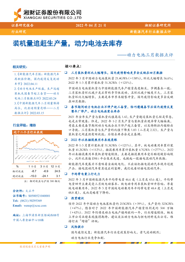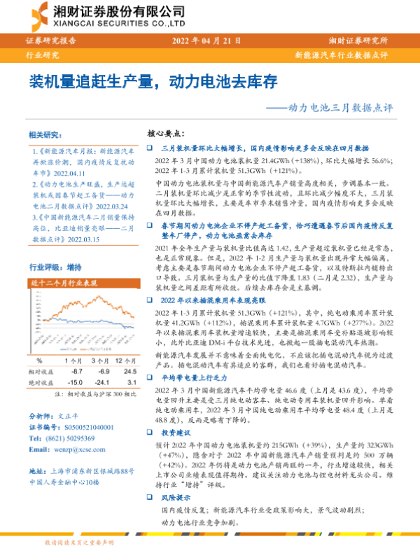 【湘财证券】【20220421】装机量追赶生产量,动力电池去库存——动力电池三月数据点评-8页