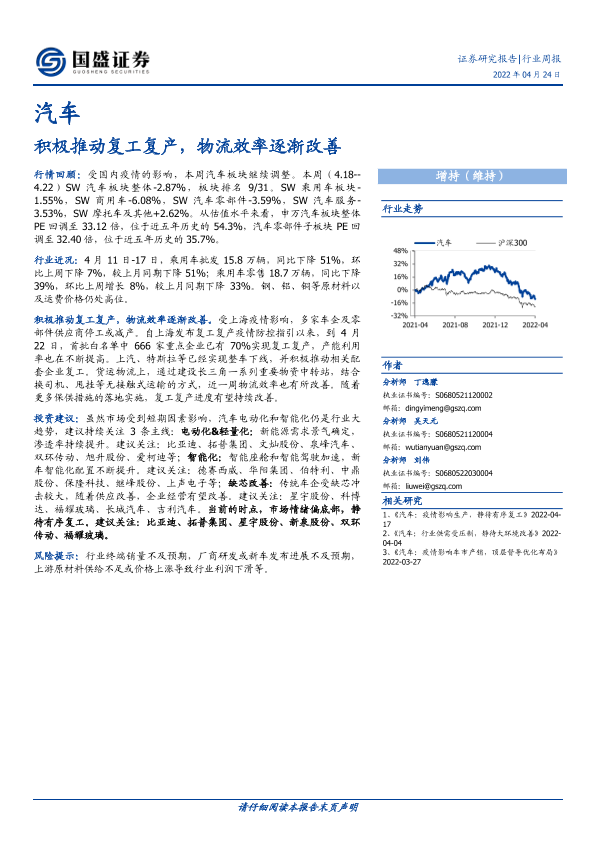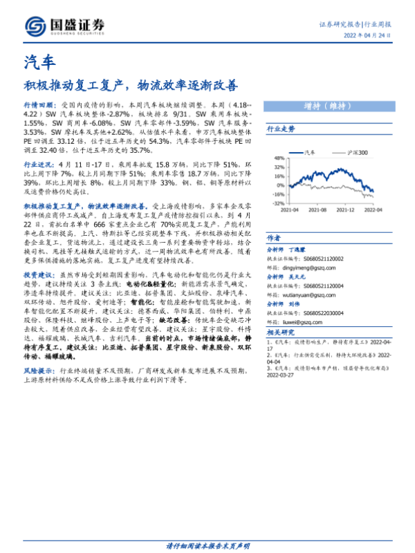 复工复产 汽车行业 物流效率 疫情影响 证券分析