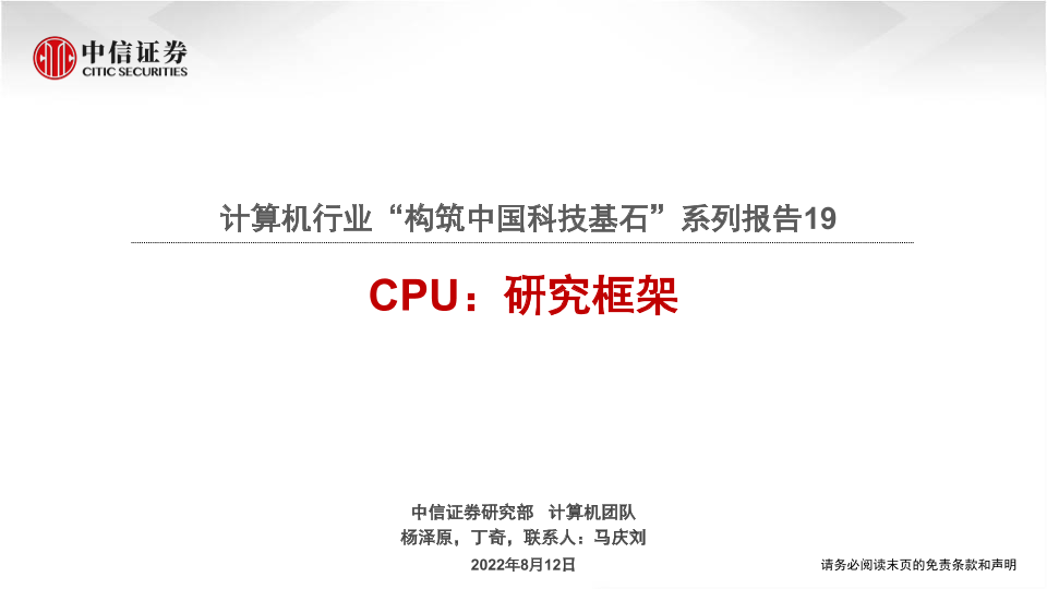 【中信证券】【20220812】计算机行业“构筑中国科技基石”系列报告19:CPU,研究框架-103页