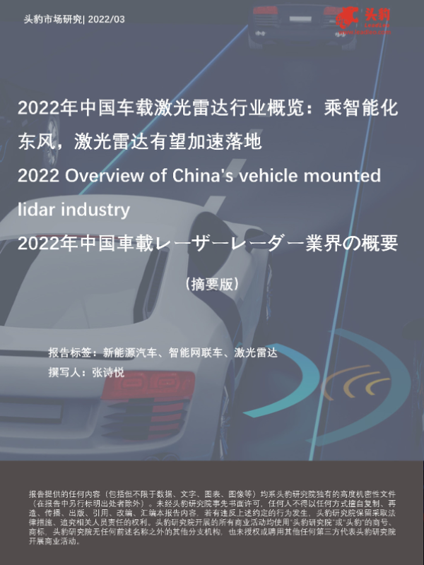 【头豹研究院】【20220429】2022年中国车载激光雷达行业概览:乘智能化东风,激光雷达有望加速落地-10页