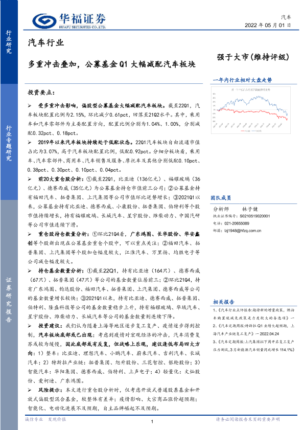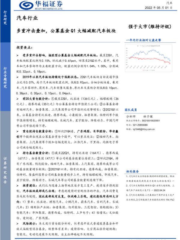 【华福证券】【20220501】20220501-华福证券-汽车行业专题研究:多重冲击叠加,公募基金Q1大幅减配汽车板块-10页
