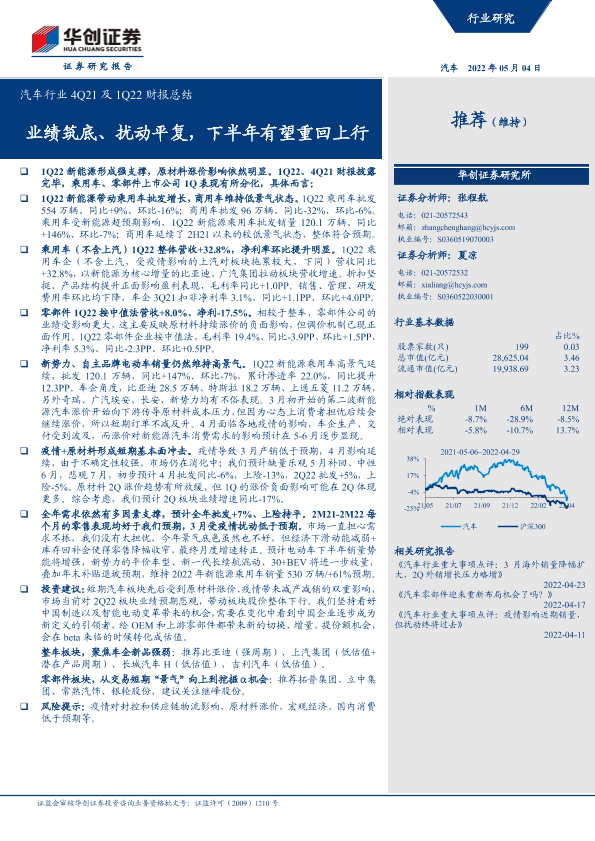 【华创证券】【20220504】汽车行业4Q21及1Q22财报总结:业绩筑底、扰动平复,下半年有望重回上行-30页