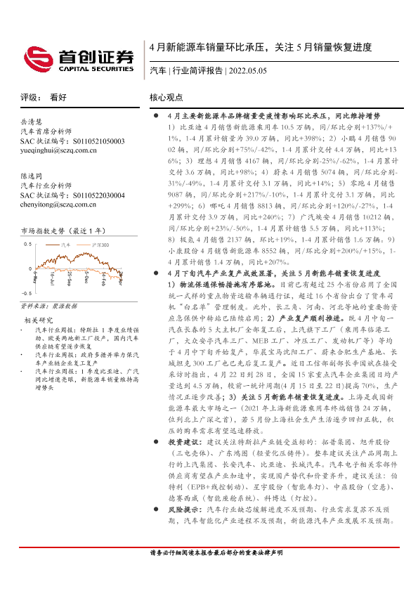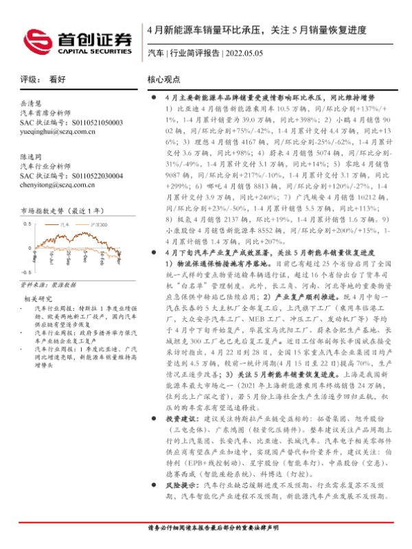 【首创证券】【20220505】20220505-首创证券-汽车行业简评报告:4月新能源车销量环比承压,关注5月销量恢复进度-16页