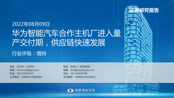 【国泰君安证券】【20220809】计算机行业:华为智能汽车合作主机厂进入量产交付期,供应链快速发展-86页