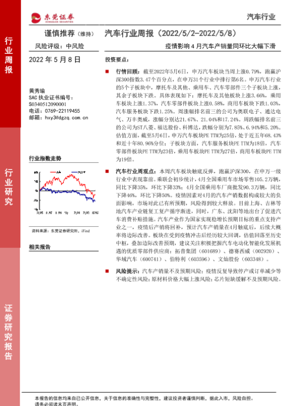 【东莞证券】【20220508】20220508-东莞证券-汽车行业周报:疫情影响4月汽车产销量同环比大幅下滑-11页