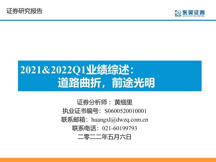 【东吴证券】【20220506】汽车2021&2022Q1业绩综述:道路曲折,前途光明-43页