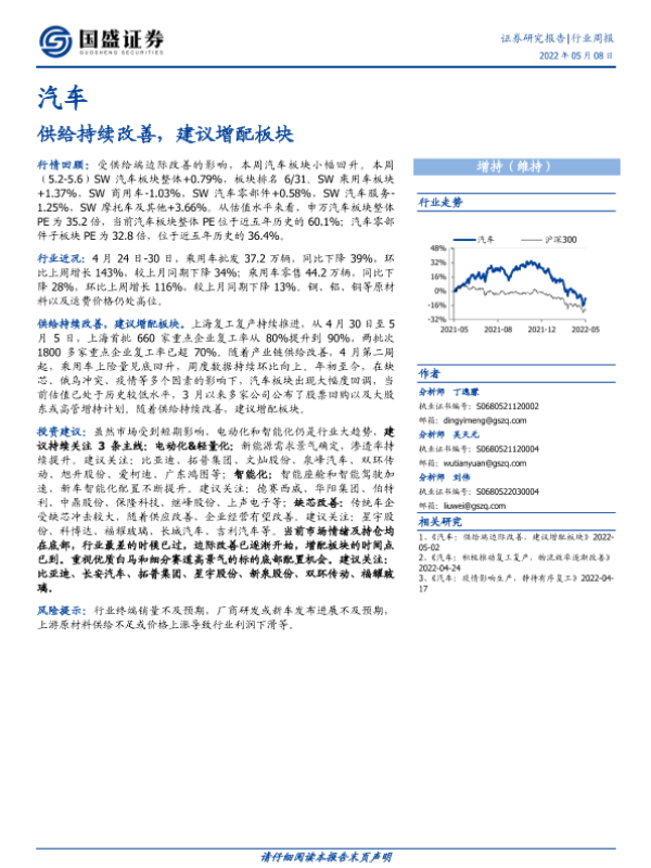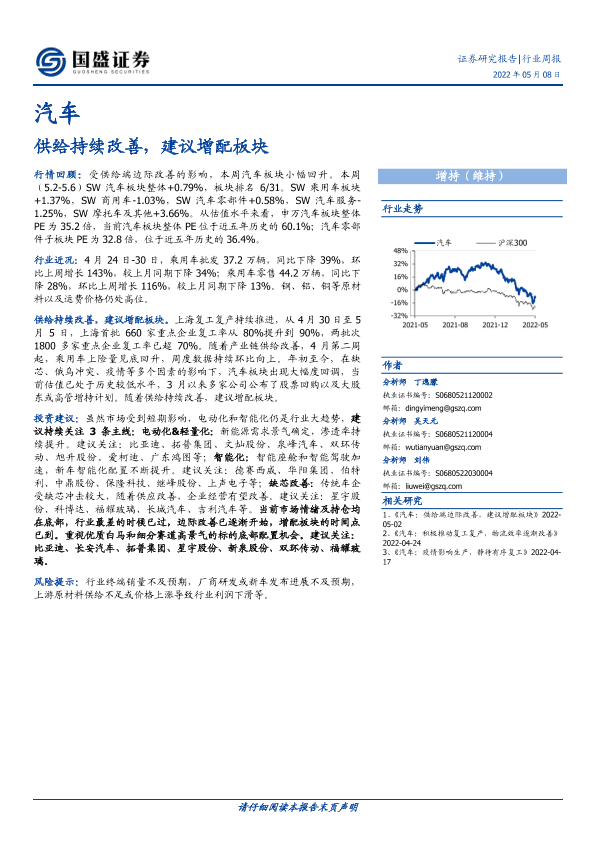 【国盛证券】【20220508】20220508-国盛证券-汽车行业周报:供给持续改善,建议增配板块-22页