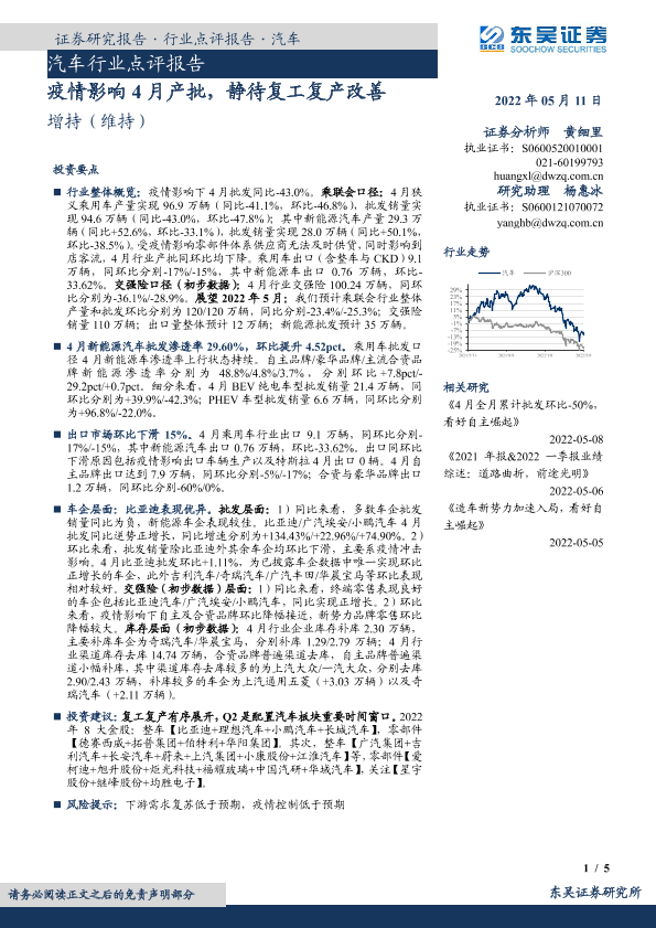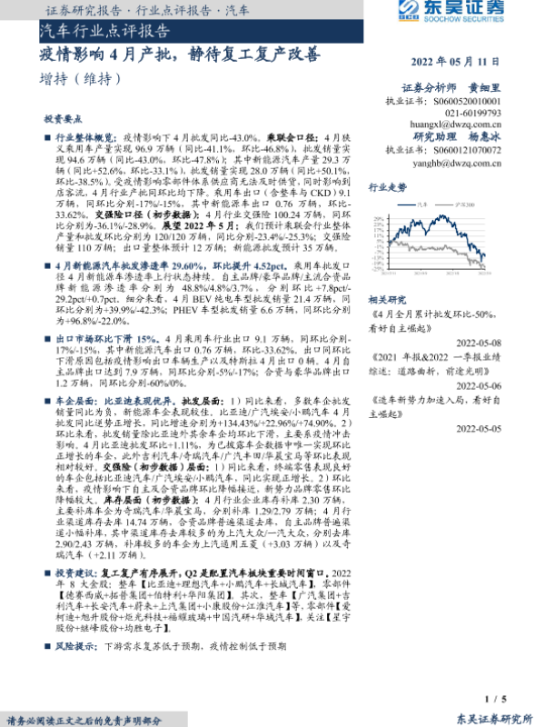 【东吴证券】【20220511】汽车行业点评报告:疫情影响4月产批,静待复工复产改善-5页
