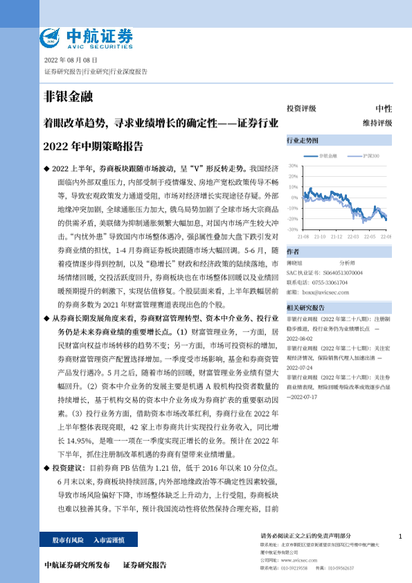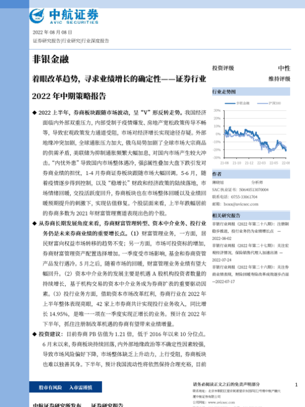 【中航证券】【20220808】证券行业2022年中期策略报告:着眼改革趋势,寻求业绩增长的确定性-26页