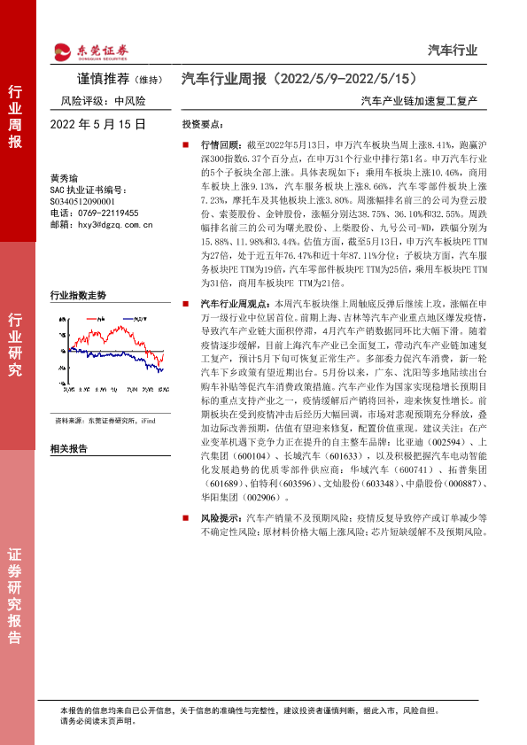 【东莞证券】【20220515】汽车行业周报:汽车产业链加速复工复产-11页