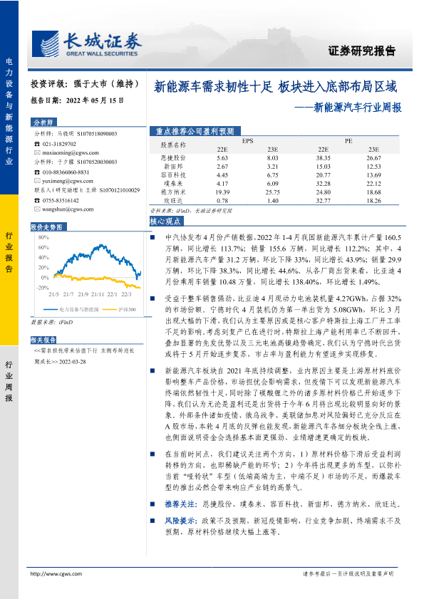 【长城证券】【20220515】20220515-长城证券-新能源汽车行业周报:新能源车需求韧性十足 板块进入底部布局区域-11页
