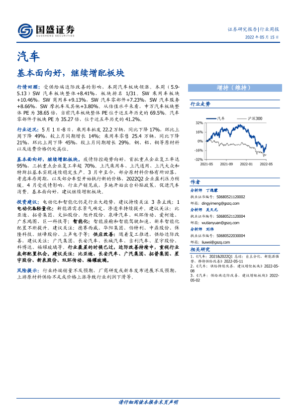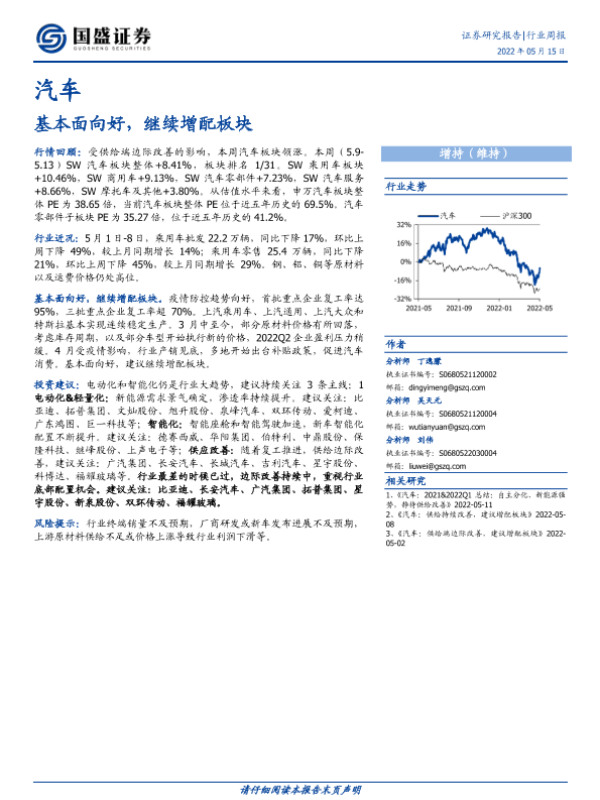 【国盛证券】【20220515】20220515-国盛证券-汽车行业周报:基本面向好,继续增配板块-23页