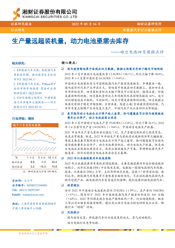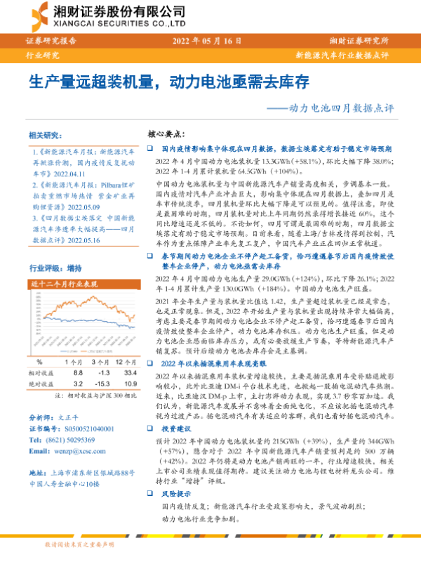【湘财证券】【20220516】动力电池四月数据点评:生产量远超装机量,动力电池亟需去库存-8页