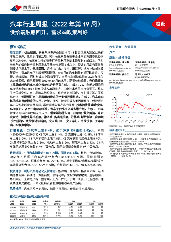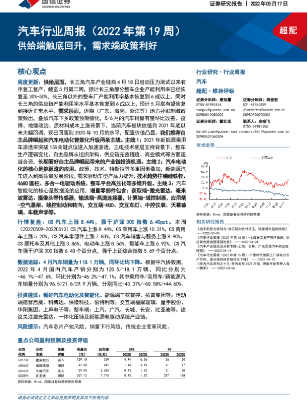 【国信证券】【20220517】汽车行业周报(2022年第19周):供给端触底回升,需求端政策利好-34页