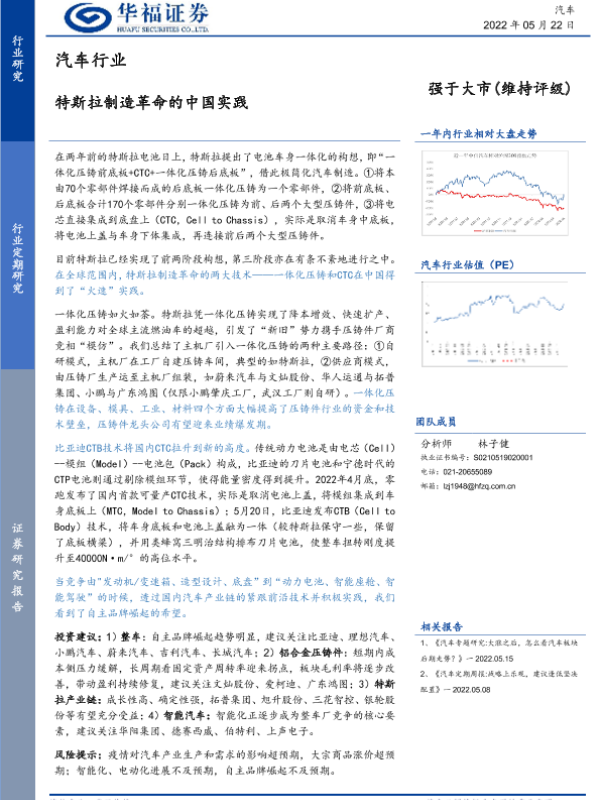 【华福证券】【20220522】汽车行业:特斯拉制造革命的中国实践-8页