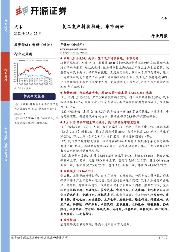 【开源证券】【20220522】汽车行业周报:复工复产持续推进,车市向好-19页
