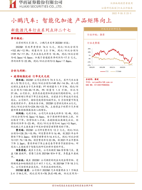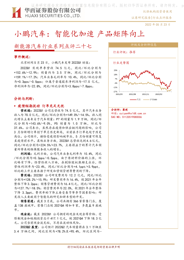 【华西证券】【20220523】20220523-华西证券-新能源汽车行业系列点评二十七:小鹏汽车:智能化加速 产品矩阵向上-6页