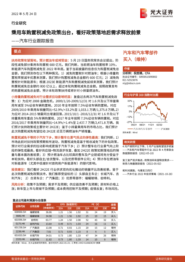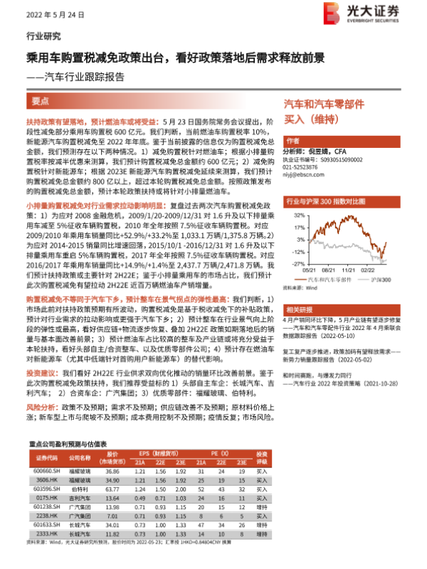 【光大证券】【20220524】乘用车购置税减免政策出台,看好政策落地后需求释放前景-2页