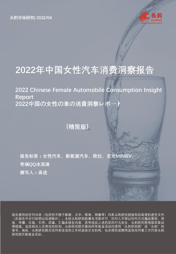 【头豹研究院】【20220525】2022年中国女性汽车消费洞察报告-9页
