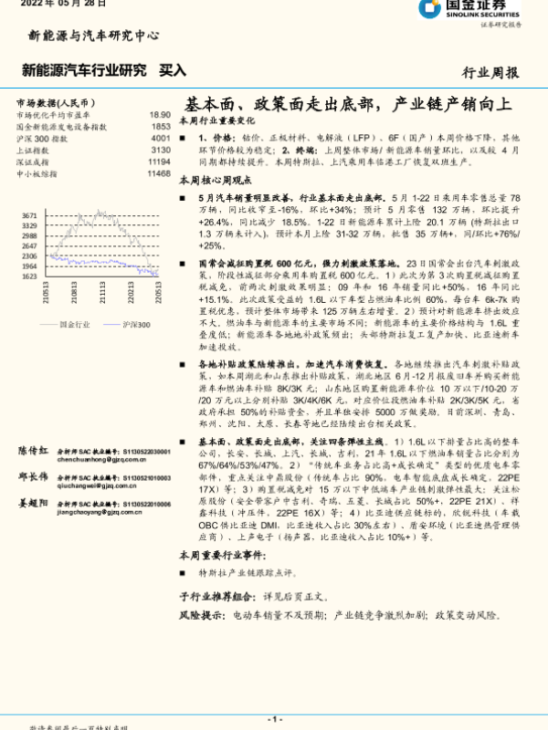 【国金证券】【20220528】20220528-国金证券-新能源汽车行业研究:基本面、政策面走出底部,产业链产销向上-9页