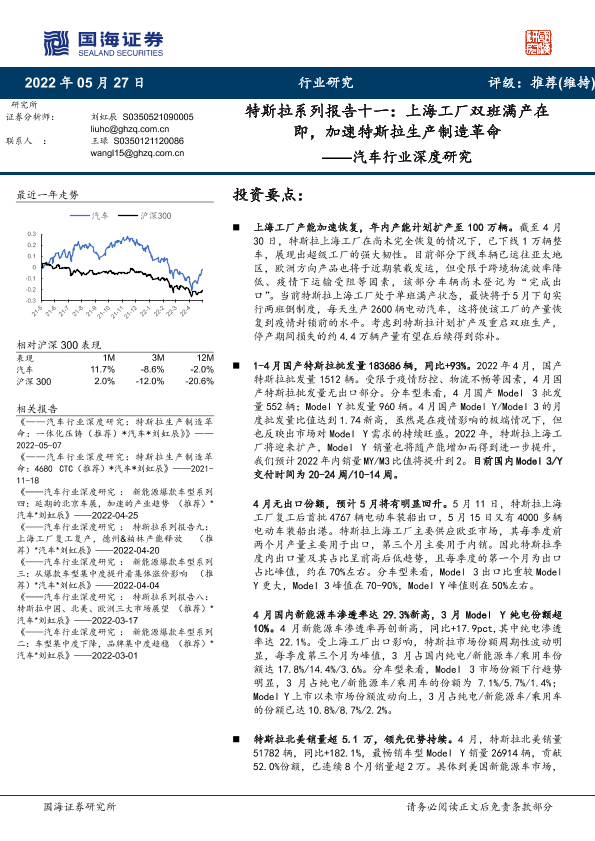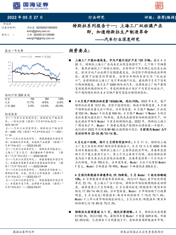 【国海证券】【20220527】特斯拉系列报告十一:上海工厂双班满产在即,加速特斯拉生产制造革命——汽车行业深度研究-30页