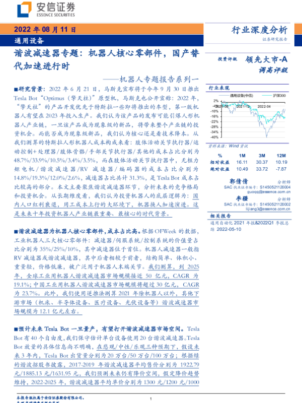 【安信证券】【20220811】通用设备行业机器人专题报告系列一:谐波减速器专题-52页