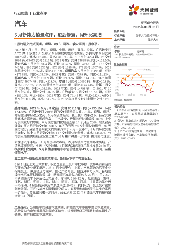 【天风证券】【20220602】汽车5月新势力销量点评:疫后修复,同环比高增-3页