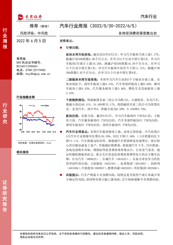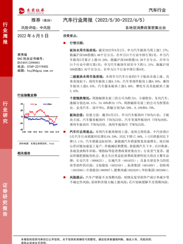 【东莞证券】【20220605】汽车行业周报:各地促消费政策密集出台-11页