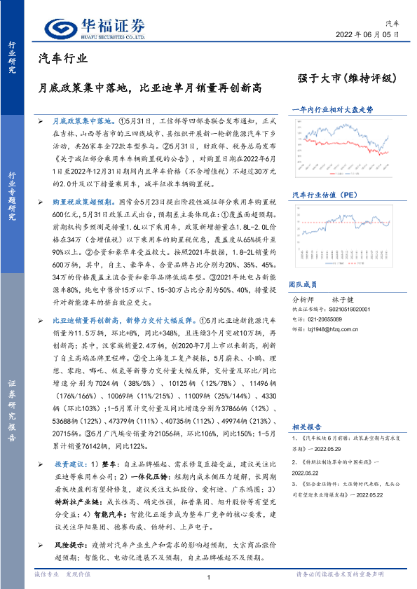 【华福证券】【20220605】月底政策集中落地,比亚迪单月销量再创新高-9页