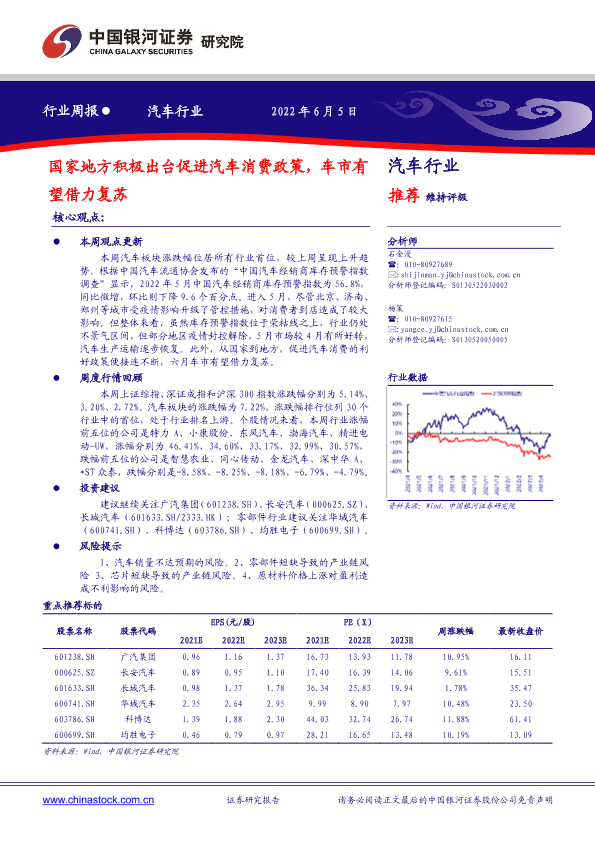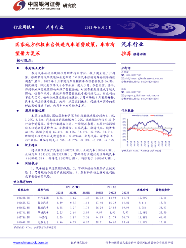 【银河证券】【20220605】20220605-中国银河-汽车行业周报:国家地方积极出台促进汽车消费政策,车市有望借力复苏-11页