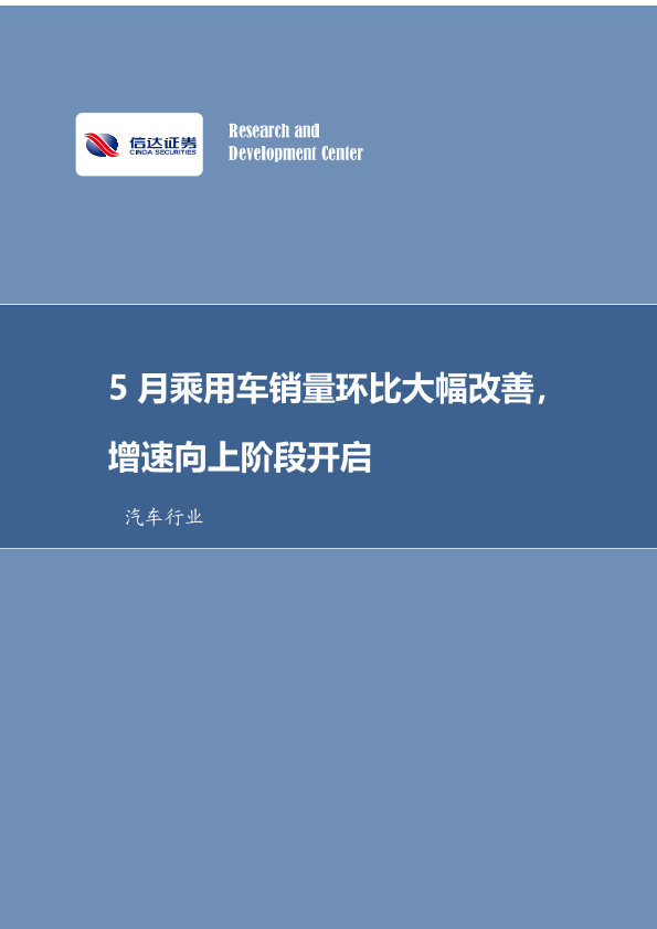 【信达证券】【20220610】20220612-信达证券-汽车行业数据点评:5月乘用车销量点评:环比大幅改善,产销增速向上阶段开启-11页