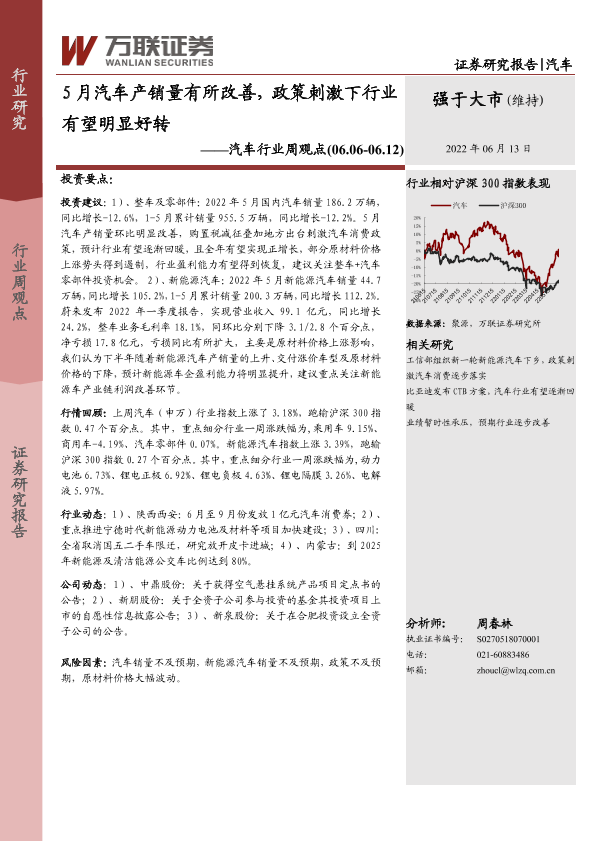 【万联证券】【20220613】5月汽车产销量有所改善,政策刺激下行业有望明显好转-12页