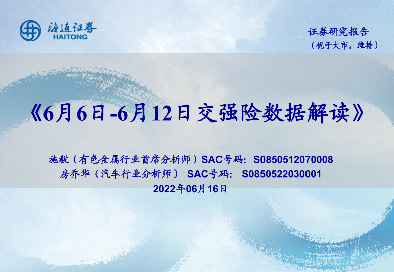 【海通证券】【20220616】6月6日-6月12日交强险数据解读-5页